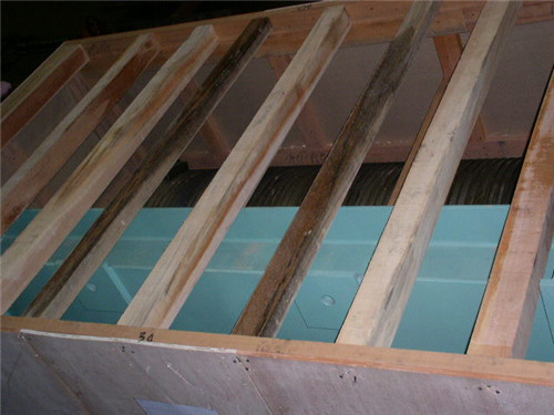 ◆底托——支撑梁(90*90、100*100、120*120、140*140),又叫枕木,在箱体底部主要起承重作用。80*80mm以上的方木可以用层积材,60*60的用胶合板滑木,作用是基本支撑,预留叉车、吊装位置。底托铺板,一般用15、18厘胶合板